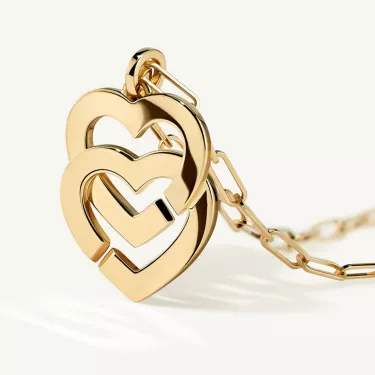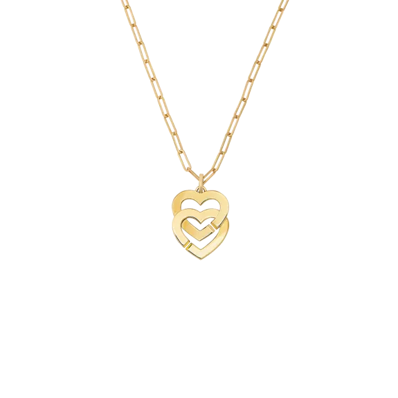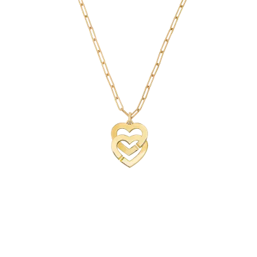 Doppelherz-Anhänger Double Cœurs R15 aus Gelbgold an einer kleinen dinh van Kette.