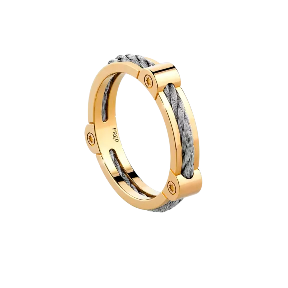 Force 10 Winch Ring aus Gelbgold mit Stahlseil.