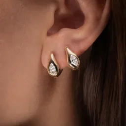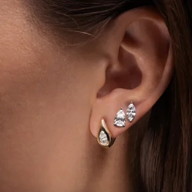 Die Curve Diamond Huggies sind aus 14 Karat recyceltem Gold handgefertigt und zeichnen sich durch eine moderne, sich verjüngende Silhouette und einen 0,30 Karat schweren Marquise-Diamanten in jedem Ohrring aus. Sie können mit dem Diamanten nach vorne oder nach hinten gedreht getragen werden, um einen vollständig polierten Goldlook zu erzielen – zwei Styles in einem. Ein sicherer Klappverschluss rastet beim Schließen ein.