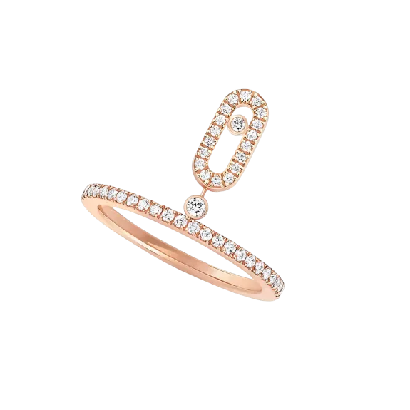 Der Diamantring Move Uno ist sowohl ein Ehering als auch ein Ring. Er verleiht Ihrem Look einen Boho-Chic-Touch. Der strahlende Diamantring aus Roségold ist mit einem diamantenen Anhänger verziert, der sich mit den Bewegungen der Trägerin bewegt. Dieses Modell wurde ursprünglich exklusiv für die Vereinigten Arabischen Emirate lanciert und war so erfolgreich, dass es nicht allen anderen Liebhabern der Maison angeboten werden konnte. Dieser Ring kann allein oder in Kombination mit anderen Diamantschmuckstücken der Maison getragen werden, nach dem von Valérie Messika so geschätzten Stacking-Trend, und wird Ihre Hand mit einem strahlenden Glanz schmücken.
