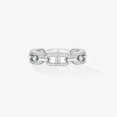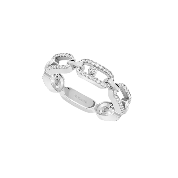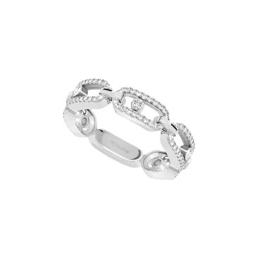 Lassen Sie sich von dem neuen Diamantring Move Link Multi Pavée verführen, der aus 18 Karat Weißgold gefertigt ist. Dieser moderne und elegante Ring vereint die Finesse eines funkelnden Diamant-Paves mit den Diamanten in der Mitte, die sich bewegen - ein ikonisches Prinzip des Juwelierhauses Messika - und wird Ihre Hand mit einem einzigartigen Glanz erstrahlen lassen. Ob als Damen-Diamantring oder als klassischer Ring getragen, ist er der perfekte Verbündete für alle, die ein kostbares Luxusschmuckstück suchen, das sich im Alltag leicht tragen lässt. Kurzum, ein ideales Geburtstagsgeschenk zu einem wichtigen Datum.