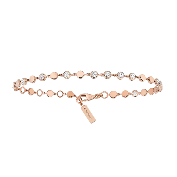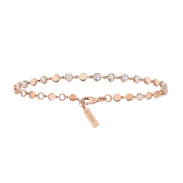 Haben Sie Lust auf ein elegantes Armband, das Sie täglich tragen können? Dann ist das D-Vibes Armband aus Roségold und Diamanten genau das Richtige für Sie! Inspiriert von klassischen Flussmodellen, interpretiert dieses Luxusarmband dieses Must-have des Schmuckkästchens mit Energie und Modernität neu. Mit seinem Wechselspiel aus Gold- und Diamantmotiven passt dieses Armband zu allen Ihren Outfits, von formell bis leger. Tragen Sie es allein für einen minimalistischen Look oder in Kombination mit anderen Diamantschmuckstücken von Messsika für einen ultra-modischen Look.