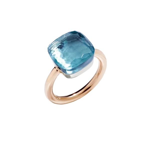 Ring aus 18 Karat Weiß- und Roségold mit 1 Himmelblauen Topas (≈9 Ct).