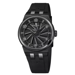 Die neue Perrelet Turbine Titanium 41 Black ist ein kühnes und stilvolles Schmuckstück, das alle Blicke auf sich zieht. Die Uhr ist aus leichtem und widerstandsfähigem Titan mit einer schwarzen DLC-Beschichtung gefertigt, die kratzfest ist und sich mit der Zeit nicht verändert. Das ikonische Turbinenzifferblatt verfügt über ein leuchtend schwarzes Hilfszifferblatt, das zum Leben erwacht, wenn sich die Turbine dreht. Das Kautschukarmband ist ebenfalls schwarz und sorgt für ein einheitliches und auffälliges Erscheinungsbild.