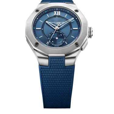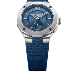 Die auf 500 Exemplare limitierte Maréographe Baumatic Riviera verkörpert mit ihrer blauen Ästhetik und ihrer Gezeitenanzeige den nautischen Geist. Ihr 43-mm-Edelstahlgehäuse beherbergt ein Baumatic-Manufakturwerk, das Präzision und Langlebigkeit garantiert, und wird von einem austauschbaren blauen Kautschukarmband begleitet. Das harmonische blaue Zifferblatt mit römischen Ziffern zeigt die Ebbe und Flut bei 6 Uhr an.