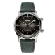 grünes Zifferblatt mit Sonnenschliff und aufgesetzten silberfarbenen Indexen