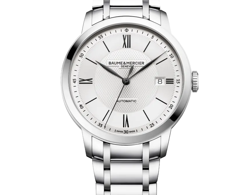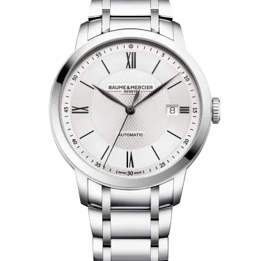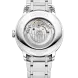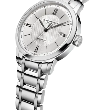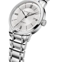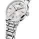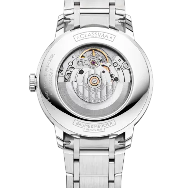 Die Classima 10854 besticht durch ihr rundes, poliertes Edelstahlgehäuse mit einem Durchmesser von 40 mm. Die Krone und der offene Gehäuseboden mit Saphirglas runden das Gesamtbild dezent ab. Das silberfarbene Opalinzifferblatt mit Sonnenschliff und Gerstenkornmuster bringt die schwarzen römischen Ziffern und Indexe sowie die blattförmigen Rutheniumzeiger besonders gut zur Geltung. Ein Datumsfenster bei 3 Uhr rundet das Gesamtbild ab. Angetrieben von einem Automatikwerk (Sellita SW200) bietet sie eine Gangreserve von 38 Stunden und eine Wasserdichtigkeit von 5 ATM. Ihr integriertes 5-reihiges Armband aus poliertem und satiniertem Edelstahl ist mit einer dreifachen Faltschließe mit Sicherheitsdrückern ausgestattet.