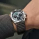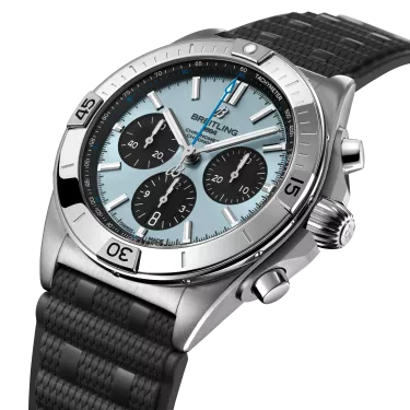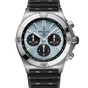 Breitling's Allzweck-Uhr für jede Art von Aktivität. Die Chronomat nimmt einen bedeutenden Platz in der Geschichte von Breitling ein. Bei ihrer Einführung im Jahr 1984, als extraflache Quarzuhren an der Tagesordnung waren, wagte Breitling den Schritt zu einer mechanischen Uhr mit beeindruckenden Proportionen. Die Chronomat, die auf dem 1983 in Zusammenarbeit mit der berühmten italienischen Fliegerstaffel entwickelten und lancierten Chronographen Frecce Tricolori basiert, feierte das hundertjährige Bestehen von Breitling mit Stil und verschaffte dem mechanischen Chronographen den ihm gebührenden Platz bei der Marke, die ihren Weltruf auf diesen unglaublichen Uhren aufgebaut hatte. Der Chronomat ist in einer Vielzahl von Materialien erhältlich, von Edelstahl bis zu luxuriösem 18-karätigem Rotgold, und verfügt über ein 42-mm-Gehäuse und die ikonische Lünette mit den vier Reiterlaschen. Der Chronomat ist in einer Reihe von farbigen Zifferblättern erhältlich, wird mit dem charakteristischen „Rouleaux“-Armband aus Metall oder Kautschuk kombiniert und vom hauseigenen Breitling-Manufakturkaliber 01, einem COSC-zertifizierten Chronometer, angetrieben.
