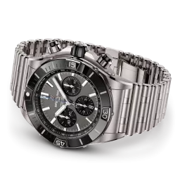 Breitling's supercharged watch for your every pursuit. Die Super Chronomat ist von der originalen Chronomat aus den 1980er Jahren inspiriert, die Breitling für die kühnsten Kunstflugstaffeln entwickelt hat. Als kühnste aller Chronomat-Uhren verfügt die Super Chronomat über mehrere Keramikeinsätze - auf der Lünette, den Chronographendrückern und der Krone - sowie über ein von Rouleaux inspiriertes Kautschukarmband. Sie ist eine universell einsetzbare Sportuhr, die sich im Fitnessstudio ebenso wohlfühlt wie auf einer Gala. Die Super Chronomat ist in verschiedenen Farb- und Metallvarianten erhältlich, von Edelstahl über 18 Karat Rotgold bis hin zu ultraleichtem Titan. Sie verfügt entweder über das ikonische Rouleaux-Armband oder ein von Rouleaux inspiriertes Kautschukarmband mit Faltschließe. Angetrieben wird die Super Chronomat B01 44 vom Breitling Manufakturkaliber 01, einem COSC-zertifizierten Chronometer.