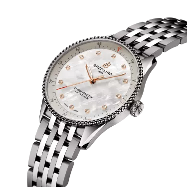 Breitlings Ikone – für die Reise. Die Navitimer ist eine der bekanntesten Uhren, die je hergestellt wurden. Sie steht als eine der grossartigsten Uhren aller Zeiten auf den Sammlerlisten. Was 1952 als Instrument für Piloten begann, hat inzwischen eine tiefe Bedeutung für jeden, den dieser Zeitmesser auf seiner persönlichen Reise begleitet. Unsere Ikone kommt jetzt in den Grössen 36 und 32 mm für Frauen und Männer, die die Optik und Haptik einer Uhr mit kleinerem Durchmesser lieben. Während die 36-mm-Navitimer die Perlenlünette und den ikonischen kreisförmigen Rechenschieber aufweist, die der Navitimer ihr unverkennbares Aussehen verleihen, verzichtet die beeindruckende 32-mm-Variante auf den Rechenschieber zugunsten eines schlichteren Zifferblattdesigns, das auf den schlanken Durchmesser abgestimmt ist. Doch diese Blickfänger haben so viel mehr zu bieten als nur ihre schlanke neue Grösse. Pastelltöne, Perlmutt und rückverfolgbare Rohstoffe verbinden sich mit dezenten Feinheiten, um den Zeitmessern einen schmuckähnlichen Charakter zu verleihen – zusätzliche vielseitige Eleganz für die legendäre Navigationsuhr, die bereit für all Ihre Reisen ist.