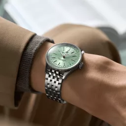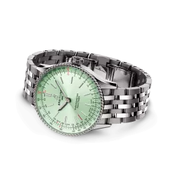 Breitlings Ikone – für die Reise. Die Navitimer ist eine der bekanntesten Uhren, die je hergestellt wurden. Sie steht als eine der grossartigsten Uhren aller Zeiten auf den Sammlerlisten. Was 1952 als Instrument für Piloten begann, hat inzwischen eine tiefe Bedeutung für jeden, den dieser Zeitmesser auf seiner persönlichen Reise begleitet. Unsere Ikone kommt jetzt in den Grössen 36 und 32 mm für Frauen und Männer, die die Optik und Haptik einer Uhr mit kleinerem Durchmesser lieben. Während die 36-mm-Navitimer die Perlenlünette und den ikonischen kreisförmigen Rechenschieber aufweist, die der Navitimer ihr unverkennbares Aussehen verleihen, verzichtet die beeindruckende 32-mm-Variante auf den Rechenschieber zugunsten eines schlichteren Zifferblattdesigns, das auf den schlanken Durchmesser abgestimmt ist. Doch diese Blickfänger haben so viel mehr zu bieten als nur ihre schlanke neue Grösse. Pastelltöne, Perlmutt und rückverfolgbare Rohstoffe verbinden sich mit dezenten Feinheiten, um den Zeitmessern einen schmuckähnlichen Charakter zu verleihen – zusätzliche vielseitige Eleganz für die legendäre Navigationsuhr, die bereit für all Ihre Reisen ist.