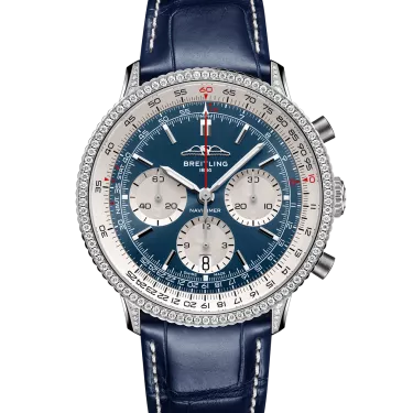 Der legendäre Fliegerchronograph von Breitling – für die Reise. Im Jahr 1952 entwickelt Willy Breitling einen Chronographen mit einem kreisförmigen Rechenschieber, mit dem Piloten alle notwendigen Flugberechnungen durchführen können. Zwei Jahre später macht die renommierte amerikanische Vereinigung AOPA (Aircraft Owners and Pilots Association) diese Ausführung zu ihrem offiziellen Zeitmesser. Die «Navigation Timer» – oder Navitimer – ist geboren. Die AOPA ist und bleibt der grösste Pilotenverein der Welt und zählt fast jeden US-Piloten zu ihren Mitgliedern. Als De-facto-Fliegeruhr während der glorreichen Ära der zivilen Luftfahrt wurde die Navitimer von Piloten und Flugbegeisterten gleichermassen getragen. 1962 schaffte sie es am Handgelenk des Astronauten Scott Carpenter sogar ins Weltall. Doch nicht nur Piloten waren von der unbändigen Ästhetik der Uhr beeindruckt. Berühmtheiten wie Miles Davis oder Serge Gainsbourg gehörten ebenfalls zu ihren Fans und bewiesen damit, dass die Navitimer nicht nur stilvoll, sondern auch funktional war. Seit ihrer Markteinfürung vor 70 Jahren wurden diverse Modelle dieser Breitling Ikone lanciert, doch diese neue Navitimer überzeugt mit ihren klassischen Eigenschaften, die mithilfe moderner Verbesserungen noch verfeinert wurden. Ein abgeflachter Rechenschieber und ein gewölbtes Glas schaffen den Eindruck eines schlankeren Profils. Der Wechsel von polierten und gebürsteten Metallelementen sorgt für ein schimmerndes und dennoch dezentes Aussehen. Es sind vor allem die neuen Farben in Blau-, Grün- und Kupfertönen, die die aktualisierten Zifferblattoptionen definieren. Und wenn es eine Neuerung gibt, die für Nostalgie sorgen wird, sind es die AOPA-Flügel, die nun wieder dort sind, wo sie ursprünglich waren – bei 12 Uhr. Seit bereits 70 Jahren erfreut sich die Original-Fliegeruhr grosser Beliebtheit bei Piloten und Trendsettern gleichermassen. Getragen von Astronauten im Weltraum und von den grössten Stars der Welt, handelt es sich um den legendärsten Zeitmesser von Breitling und um eine der unverwechselbarsten Uhren aller Zeiten.