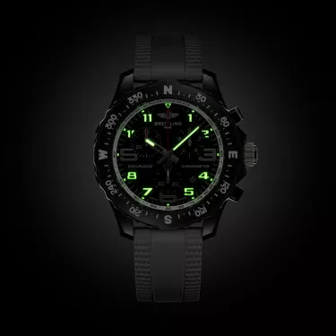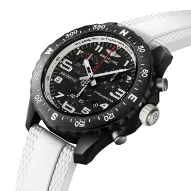 Die Endurance Pro ist sowohl ein leichter Zeitmesser für Sportler als auch ein lässiger Sportchronograph für den Alltag. Sie verbindet innovative Technologie mit einem dynamischen Design und ist damit die ultimative Athleisure-Uhr. Die Endurance Pro wurde für Männer und Frauen entwickelt, deren aktives Leben eine professionelle Einstellung mit einem sportlichen Lebensstil verbindet. Sie ist den Herausforderungen eines strengen Trainings gewachsen, aber dennoch modisch genug für den Alltag. Die Endurance Pro verfügt über ein ultraleichtes Breitlight®-Gehäuse, ein robustes Material, das 3,3 Mal leichter ist als Titan und 5,8 Mal leichter als Edelstahl. Breitlight® ist nicht magnetisch, thermisch stabil und hypoallergen. Es ist äußerst widerstandsfähig gegen Kratzer, Abrieb und Korrosion. Zudem fühlt es sich wärmer an als Metall und hat einen leicht strukturierten Effekt, der die Originalität des Designs unterstreicht. Das Material ist exklusiv für Breitling und wird zu 100 Prozent in der Schweiz hergestellt. In 44 mm oder 38 mm ist die Endurance Pro für Athleten mit einer Vielzahl von farbigen Zifferblättern und Kautschukarmbändern erhältlich, die alle mit einer Breitlight®-Dornschließe ausgestattet sind. Die beiden Grössen werden von den Breitling-Kalibern 82 und 83 angetrieben, beides COSC-zertifizierte SuperQuartz™-Chronographen, die eine aussergewöhnliche Präzision bieten.
