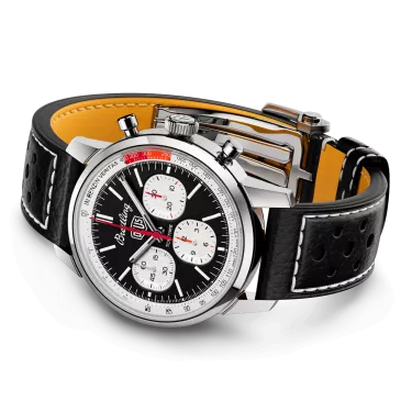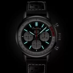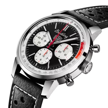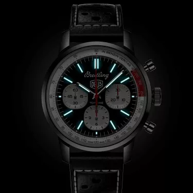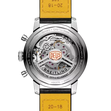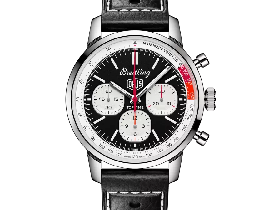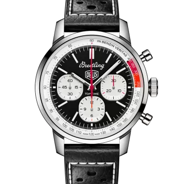 Die 1960er Jahre waren ein Jahrzehnt, das von Experimentierfreude, Spass, Freiheit und Energie geprägt war. Ob man mit einem Motorrad eine Spritztour machte oder in einem Sportwagen Gas gab, das Leben lief auf Hochtouren. Willy Breitling spürte diesen Tempowechsel und nahm sich vor, einen unkonventionellen Chronographen zu entwickeln, der den Schwung der Epoche einfing. Er nannte ihn die Top Time. Diese lebendige Tradition wird auch heute noch fortgesetzt, denn Breitling arbeitet bei der Entwicklung der Top Time mit einigen der angesagtesten Namen der Auto- und Motorradindustrie zusammen. Die gemeinsam mit dem australischen Surf- und Motorradausstatter Deus Ex Machina entwickelte Top Time B01 Deus wird Biker, Boarder und Rucksacktouristen ansprechen, die alle nach der Freiheit suchen, die Welt auf ihre eigene Weise und in ihrem eigenen Tempo zu erkunden. Sie verfügt über das Deus-Emblem und den Schriftzug «In benzin veritas» auf dem Zifferblatt sowie über ein perforiertes Lederarmband, eine Tachymeterskala und kontrastierende «Squircle»-Zifferblätter (nicht ganz quadratisch, nicht ganz rund), wodurch die besondere Atmosphäre eines klassischen Armaturenbretts erzeugt wird. Ausserdem verfügt sie über einen speziellen Chronographenzeiger in Form eines Blitzes und hat einen Motor unter der Haube, mit dem man sich sehen lassen kann: das aussergewöhnliche Breitling-Manufakturkaliber 01.