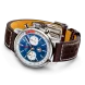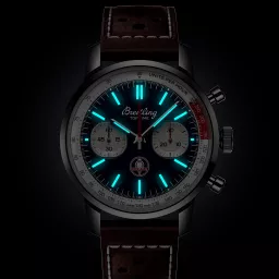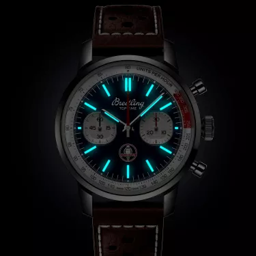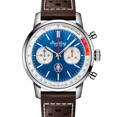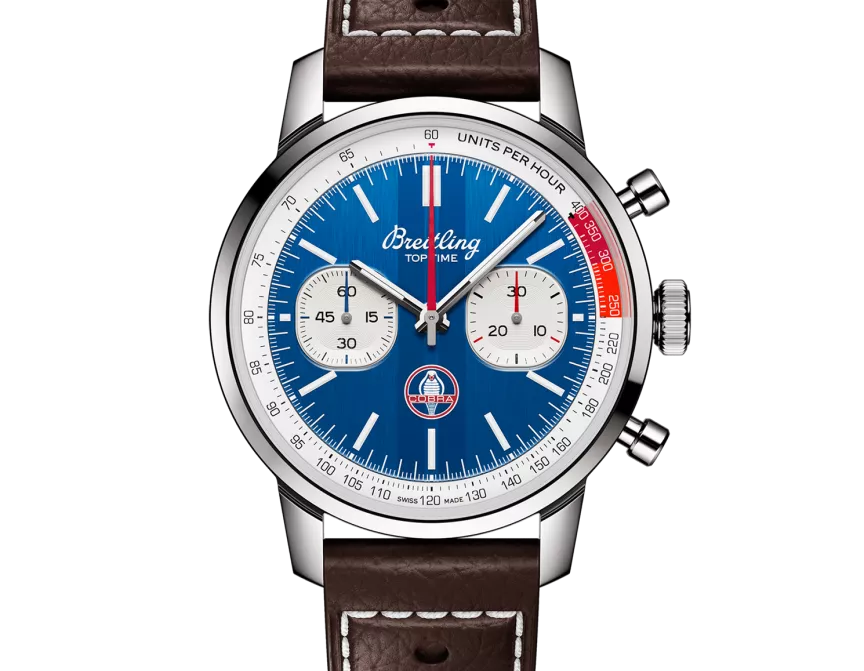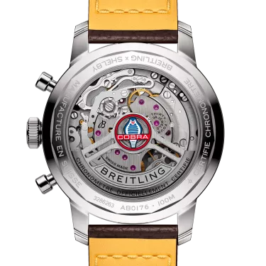 Die 1960er Jahre waren ein Jahrzehnt, das von Experimentierfreude, Spass, Freiheit und Energie geprägt war. Ob man mit einem Motorrad eine Spritztour machte oder in einem Sportwagen Gas gab, das Leben lief auf Hochtouren. Willy Breitling spürte diesen Tempowechsel und nahm sich vor, einen unkonventionellen Chronographen zu entwickeln, der den Schwung der Epoche einfing. Er nannte ihn die Top Time. Diese lebendige Tradition wird auch heute noch fortgesetzt, denn Breitling arbeitet bei der Entwicklung der Top Time mit einigen der angesagtesten Namen der Auto- und Motorradindustrie zusammen. Anfang der 1960er-Jahre träumte Carroll Shelby, Gewinner des 24-Stunden-Rennens von Le Mans, von einem Auto, das ein kleines, leichtes britisches Fahrwerk mit einem starken, zuverlässigen amerikanischen Big-Block-Motor kombinierte. Die 1962 lancierte Cobra wurde auf Anhieb zum Erfolg, sowohl bei den Sportwagenfans als auch auf der Rennstrecke. Auch heute noch gilt sie als blitzschneller, von Sammlern hochgeschätzter Wagen. Die Top Time B01 Shelby Cobra verfügt über die Farben und das Emblem ihres Oldtimer-Pendants sowie über ein perforiertes Lederarmband, eine Tachymeterskala und kontrastierende «Squircle»-Zifferblätter (nicht ganz quadratisch, nicht ganz rund), die die besondere Atmosphäre klassischer Armaturenbretter erzeugen. Zudem hat sie einen Motor unter der Haube, mit dem man sich sehen lassen kann: das aussergewöhnliche Breitling-Manufakturkaliber 01.