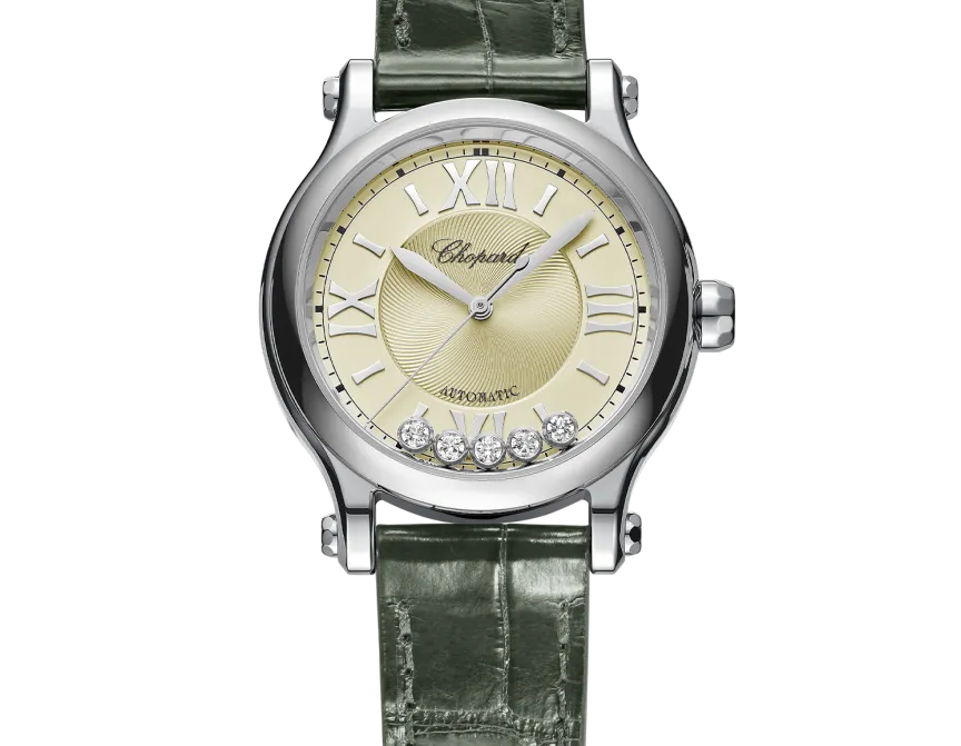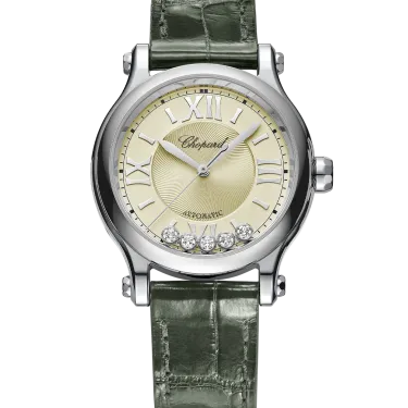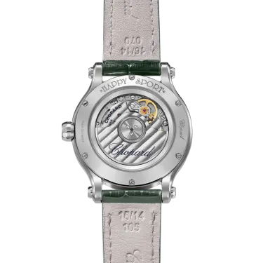 Die Kollektion Happy Sport ist das Sinnbild für die Kreativität und den Mut von Chopard. Ihre verspielten Edelsteine, die zwischen zwei Saphirgläsern tanzen, lassen seit 1993 die Herzen höher schlagen, als Chopard als erstes Haus Stahl und Diamanten miteinander kombinierte. Dank seiner Uhrmacherkunst hat Chopard die Happy Sport 33 mm mit einem mechanischen Uhrwerk mit Automatikaufzug ausgestattet, das speziell für Damenuhren entwickelt wurde. Little Diamonds Do Great Things.