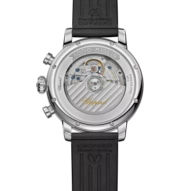 Seit 35 Jahren schlagen die Herzen von Chopard und der 1000 Miglia im Einklang. Als offizieller Zeitnehmer des weltweit berühmtesten Gleichmäßigkeitsrennens für Oldtimer hat Chopard den Mille Miglia Chronographen entwickelt. So vereinen sich die Liebe zu ästhetischer Technik und Spitzenleistung – entstanden aus der persönlichen Leidenschaft von Karl-Friedrich Scheufele für Autos und Motorsport.