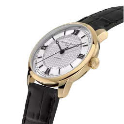 Die Classics Premiere, eine subtile Kombination aus Tradition und Eleganz, sind in einem zierlichen Gehäuse mit 38,50 mm Durchmesser untergebracht. Auf dem Zifferblatt sind die applizierten Indexe um ein Perlmutt-, Diamant- oder Kolimaçon-Dekor herum angeordnet. Durch den offenen Gehäuseboden mit einem Glaskasten, der einen Lupeneffekt auf der Rückseite der Uhr erzeugt, kann man die Côtes de Genève bewundern, die das Uhrwerk G100 La Joux-Perret veredeln.
