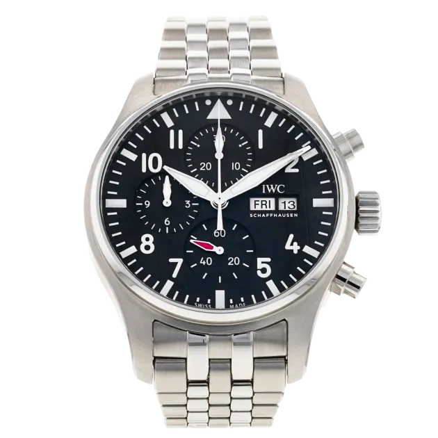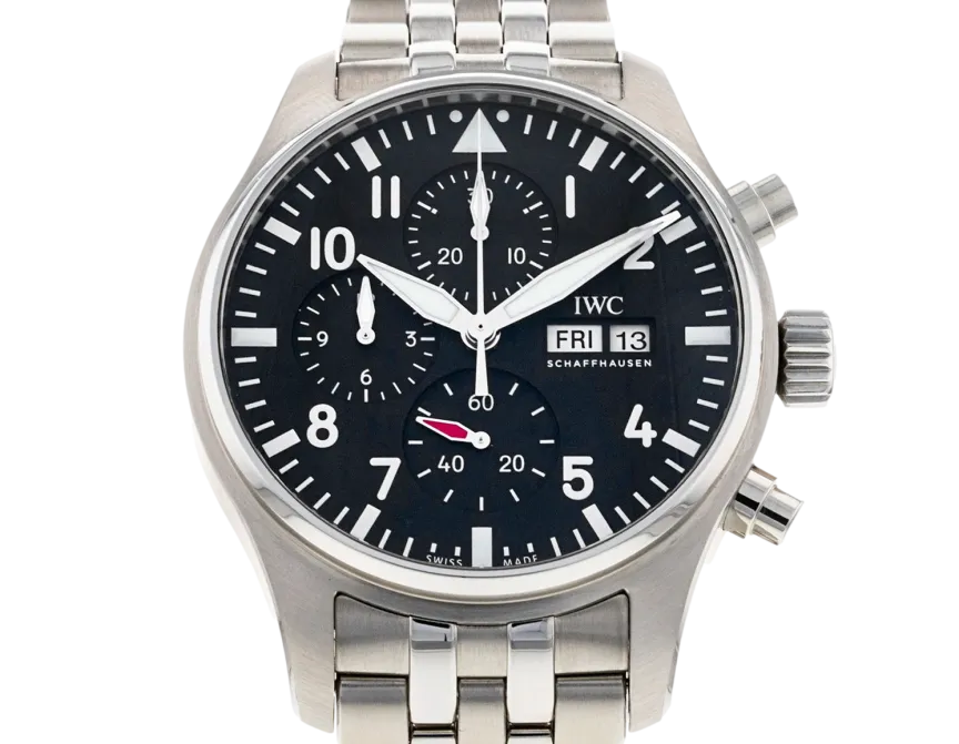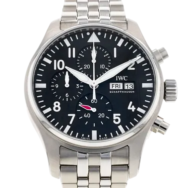 IWC brachte die „Pilot’s Watch“ erstmals 1936 als tragbares Stück Cockpit-Technologie auf den Markt, und seit der Einführung von Chronographen in den 90er Jahren sind sie zu einer treibenden Kraft geworden. Dieses im Rahmen der Watches & Wonders 2021 vorgestellte Modell aus Edelstahl verfügt über ein Automatikwerk 69385, das auch drei Hilfszifferblätter antreibt. Das Armband hat polierte und abgeschrägte Kanten für hohen Tragekomfort und lässt sich mit einem EasX-CHANGE-System abnehmen.