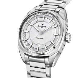 Die Turbine Lady Frost interpretiert die Perrelet-Ikone mit strahlender Eleganz und zeitgemäßer Raffinesse neu. Ihre weiß eloxierte Aluminiumturbine dreht sich mit jeder Bewegung des Handgelenks und gibt den Blick auf ein mit 60 Diamanten besetztes Hilfszifferblatt frei, das bei jeder Umdrehung Licht ausstrahlt. Das 42-mm-Edelstahlgehäuse in Kombination mit einem Edelstahlarmband unterstreicht den sportlich-schicken Charakter, während das automatische Kaliber P-331-MH, zertifiziert nach COSC und Chronofiable®, Präzision und Zuverlässigkeit garantiert. Eine Kreation, bei der Schweizer Mikromechanik auf raffinierte Weiblichkeit trifft.