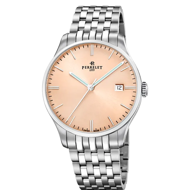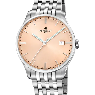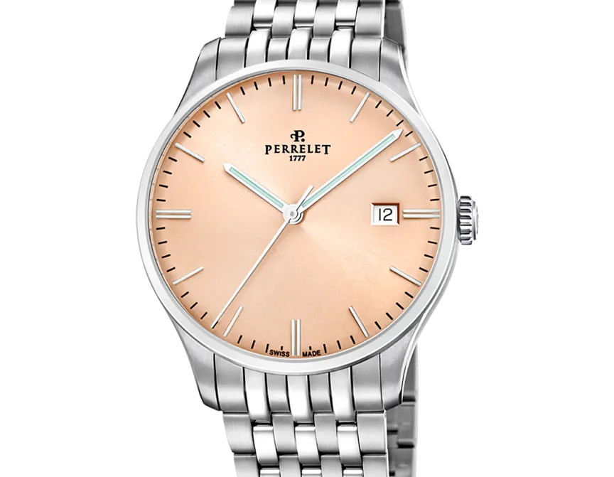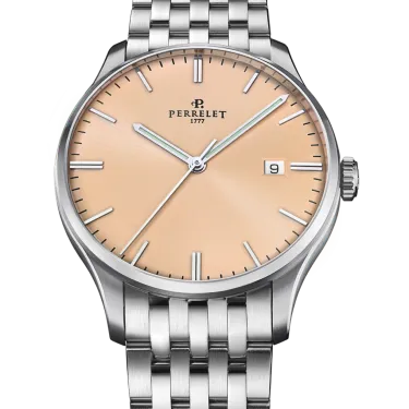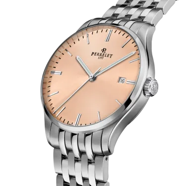 Entdecken Sie den Reiz des neuen Zifferblatts in Lachsrosa aus der Classic Weekend-Kollektion von Perrelet – eine perfekte Verschmelzung von Schweizer Tradition und modernem Design. Dieser sanfte, leuchtende Farbton, der 2024 auf den Markt kam, strahlt Gelassenheit und Eleganz aus und eignet sich sowohl für formelle Anlässe als auch für ungezwungene Treffen.