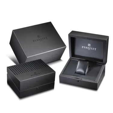Die Uhren sind mit SOPROD-Automatikwerken ausgestattet, die für ihre Präzision und Zuverlässigkeit bekannt sind. Das Basismodell nutzt das robuste Perrelet-Kaliber P-321, das für seine Robustheit und eine Gangreserve von 42 Stunden bekannt ist und sich ideal für den täglichen Gebrauch eignet. Das GMT-Modell hingegen verfügt über das Kaliber P-401, das zusätzlich zu den Standardfunktionen die gleichzeitige Anzeige von zwei Zeitzonen ermöglicht und diese Uhr zu einem unverzichtbaren Reisebegleiter macht.