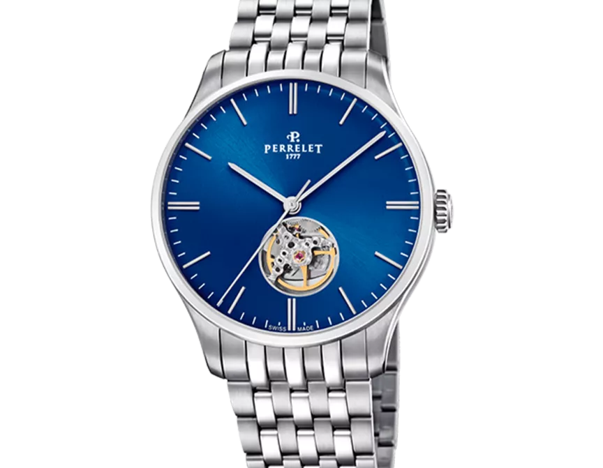 A classic, timeless design with a touch of retro and contemporary interpretation in order to satisfy watch-lovers in search of elegant and refined timepieces. The WEEKEND Open Heart model lays special emphasis on watchmaking technology, enabling micromechanics lovers to admire the heart of this piece, as the regulating organ is visible thanks to an opening at 6 o’clock.