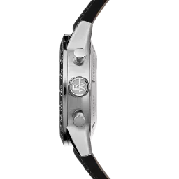 Das 43,5-mm-Edelstahlgehäuse ist mit einer Mischung aus gebürsteten und polierten Oberflächen sowie einem schwarzen Armband aus echtem Kalbsleder ausgestattet. Sowohl die Zeiger als auch die Indizes sind mit einer lumineszierenden Beschichtung versehen, die auch bei schwachem Licht für eine gute Ablesbarkeit sorgt.