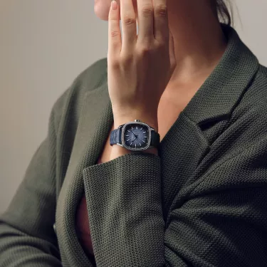 Die freelancer-Automatikuhr für Damen mit einem Durchmesser von 34,5 x 34,5 mm und einem quadratischen, kissenförmigen Gehäuse ist mit einem automatischen Schweizer Uhrwerk mit einer Gangreserve von 41 Stunden ausgestattet, das sich perfekt für den täglichen Gebrauch eignet.