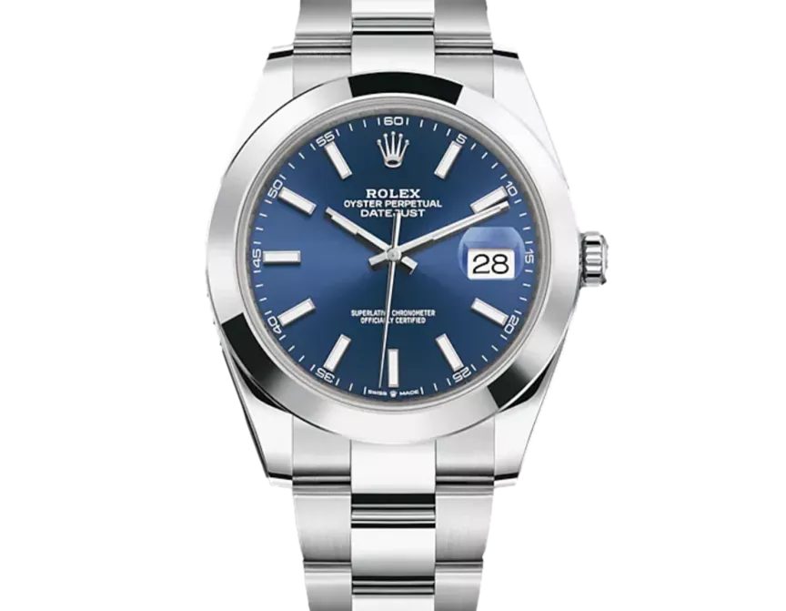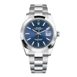 Rolex Datejust 126300 41 mm, Edelstahlgehäuse, Lünette und Oyster-Armband, Faltschließe, blaues Zifferblatt, Automatikwerk mit Originalverpackung, Originalpapieren und in einwandfreiem Zustand.