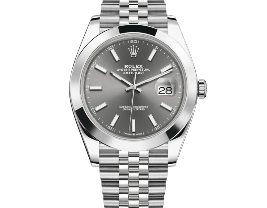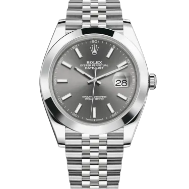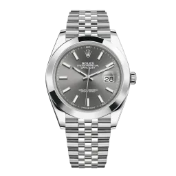 Rolex Datejust 41 126300 Uhrwerk: Automatik Gehäusegröße: 41 mm Gehäusematerial: Stahl Armbandmaterial: Stahl (Jubilee) Zifferblatt: Slate Baton Wasserdichtigkeit: 100 Meter