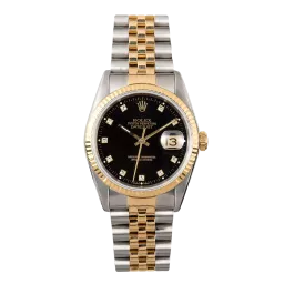 Rolex Datejust 16233 36 mm, Edelstahl-/Goldgehäuse und Jubilee-Armband, Gelbgoldlünette, Faltschließe, schwarzes Zifferblatt, Automatikwerk, Uhrwerk/Kaliber 3135, 10 ATM wasserdicht, mit Originalverpackung, Originalpapieren und in einwandfreiem Zustand. Diese Uhr wurde geprüft, zertifiziert und einer Wasserdichtigkeitsprüfung unterzogen und hat eine Garantie von 2 Jahren ab Kaufdatum.