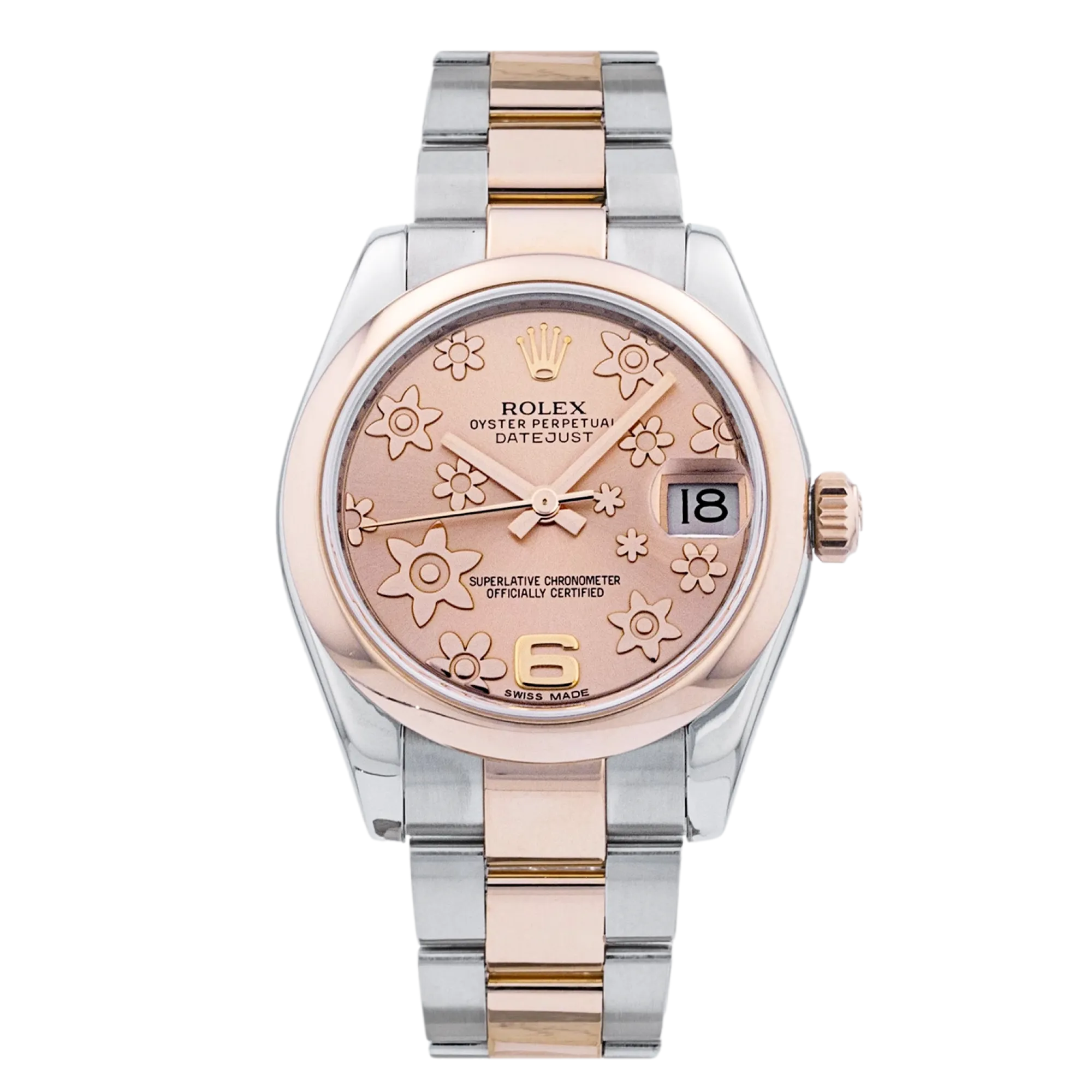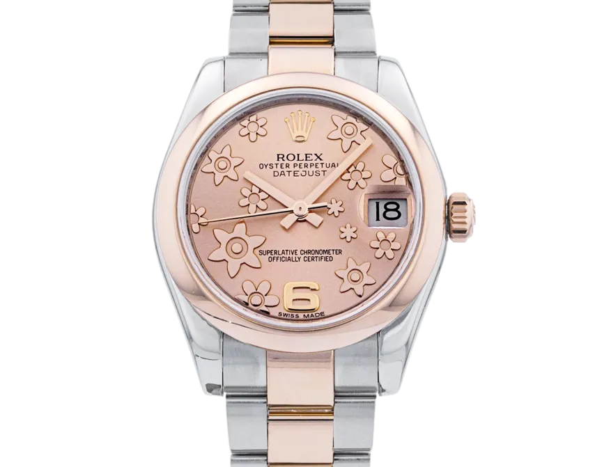 Rolex Datejust Lady 31 178241 Uhrwerk: Automatik Gehäusegröße: 31 mm Gehäusematerial: Stahl und Roségold Armbandmaterial: Stahl und Roségold (Oyster) Zifferblatt: Rosa mit Blumenmuster Wasserdichtigkeit: 100 Meter
