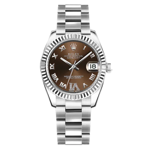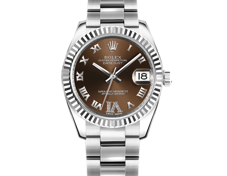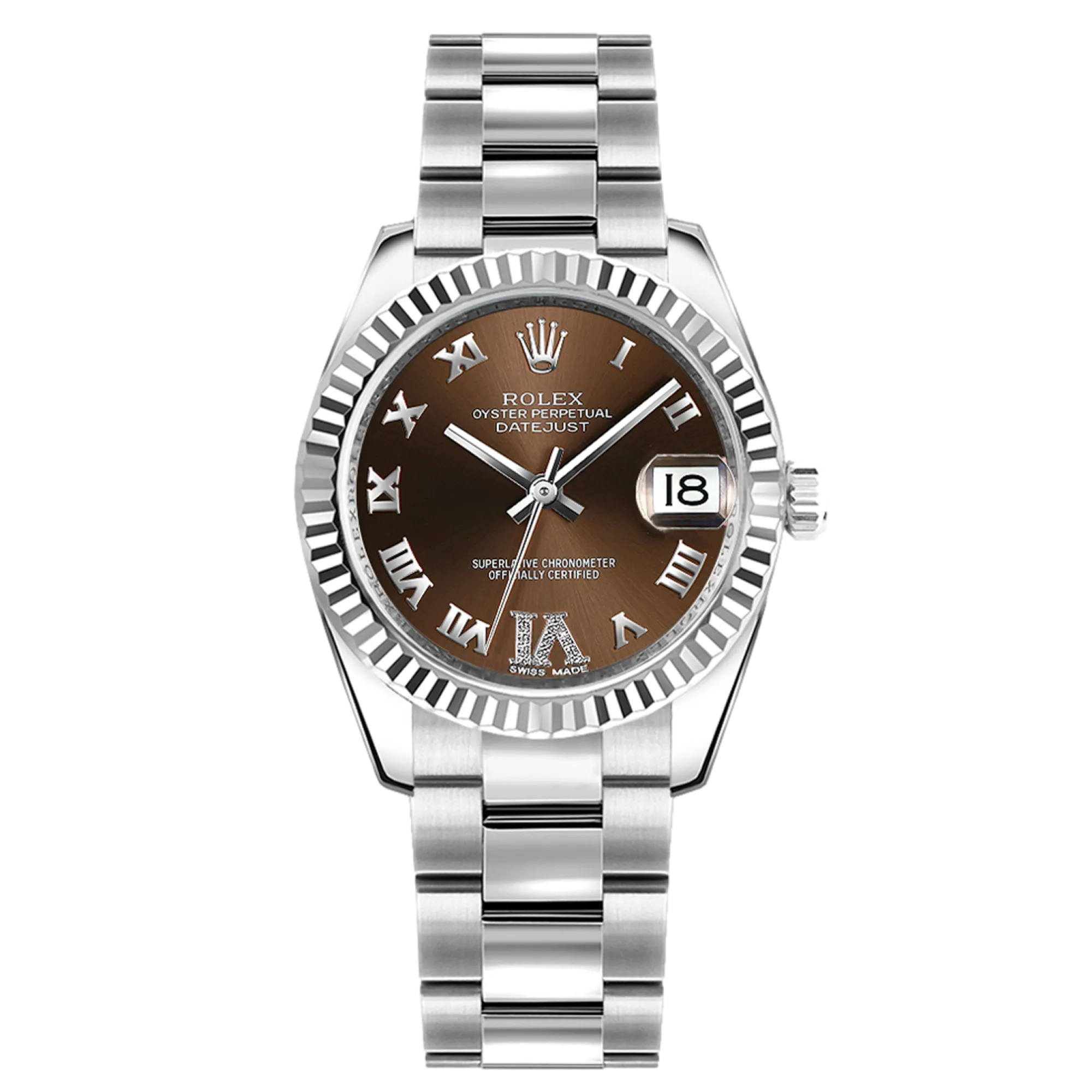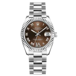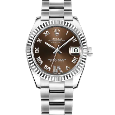 Rolex Datejust 178274 31 mm, Edelstahlgehäuse und Oyster-Armband, Lünette aus Weißgold, Faltschließe, braunes Zifferblatt, Automatikwerk, Uhrwerk/Kaliber 2235, 10 ATM wasserdicht, mit Originalverpackung, Originalpapieren und in einwandfreiem Zustand. Diese Uhr wurde geprüft, zertifiziert und einer Wasserdichtigkeitsprüfung unterzogen und hat eine Garantie von 2 Jahren ab Kaufdatum.