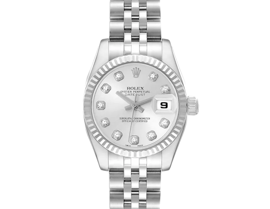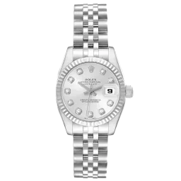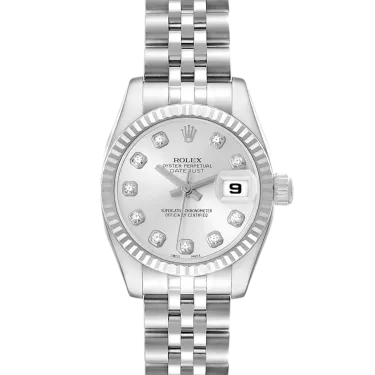 Rolex Datejust Lady 179174 Uhrwerk: Automatik Gehäusegröße: 26 mm Gehäusematerial: Stahl und Weißgold Armbandmaterial: Stahl (Jubilee) Zifferblatt: Silber Diamant Wasserdichtigkeit: 100 Meter