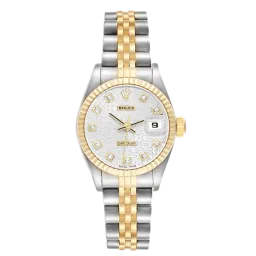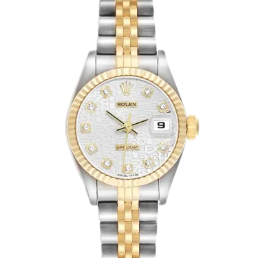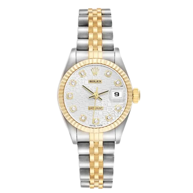Rolex Datejust 69173 26 mm, Gehäuse aus Gold/Edelstahl und Jubilee-Armband, Lünette aus Gelbgold, Faltschließe, silbernes Diamantzifferblatt, Automatikwerk, Uhrwerk/Kaliber 2135, 10 ATM wasserdicht, mit Originalverpackung, Originalpapieren und in einwandfreiem Zustand. Diese Uhr wurde geprüft, zertifiziert und einer Wasserdichtigkeitsprüfung unterzogen und hat eine Garantie von 2 Jahren ab Kaufdatum.