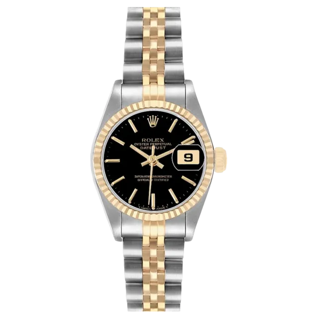 Rolex Datejust 69173, 26 mm, Gehäuse aus Edelstahl/Gold und Jubilee-Armband, Lünette aus Gelbgold, Faltschließe, schwarzes Zifferblatt, Automatikwerk, Uhrwerk/Kaliber 2135, wasserdicht bis 10 ATM, mit Originalverpackung und Originalpapieren, in einwandfreiem Zustand. Diese Uhr wurde geprüft, zertifiziert und einer Wasserdichtigkeitsprüfung unterzogen und verfügt über eine 2-jährige Garantie ab Kaufdatum.