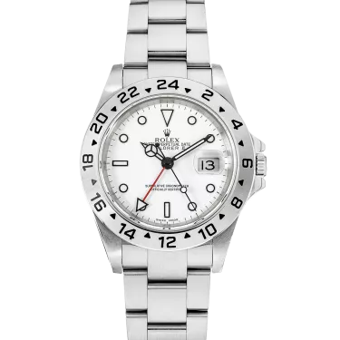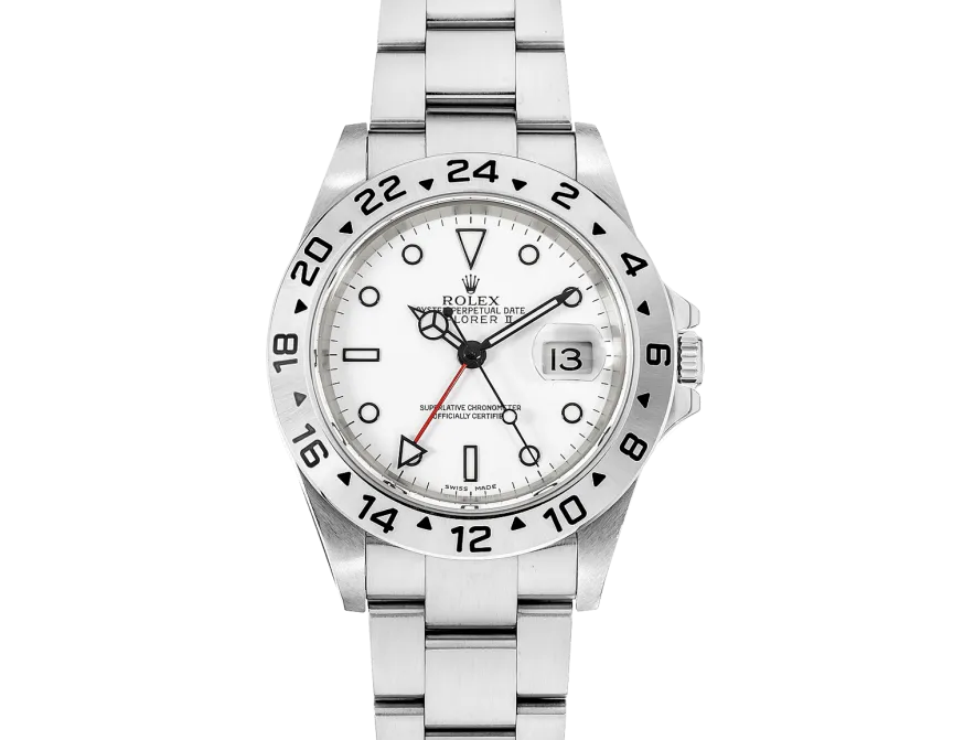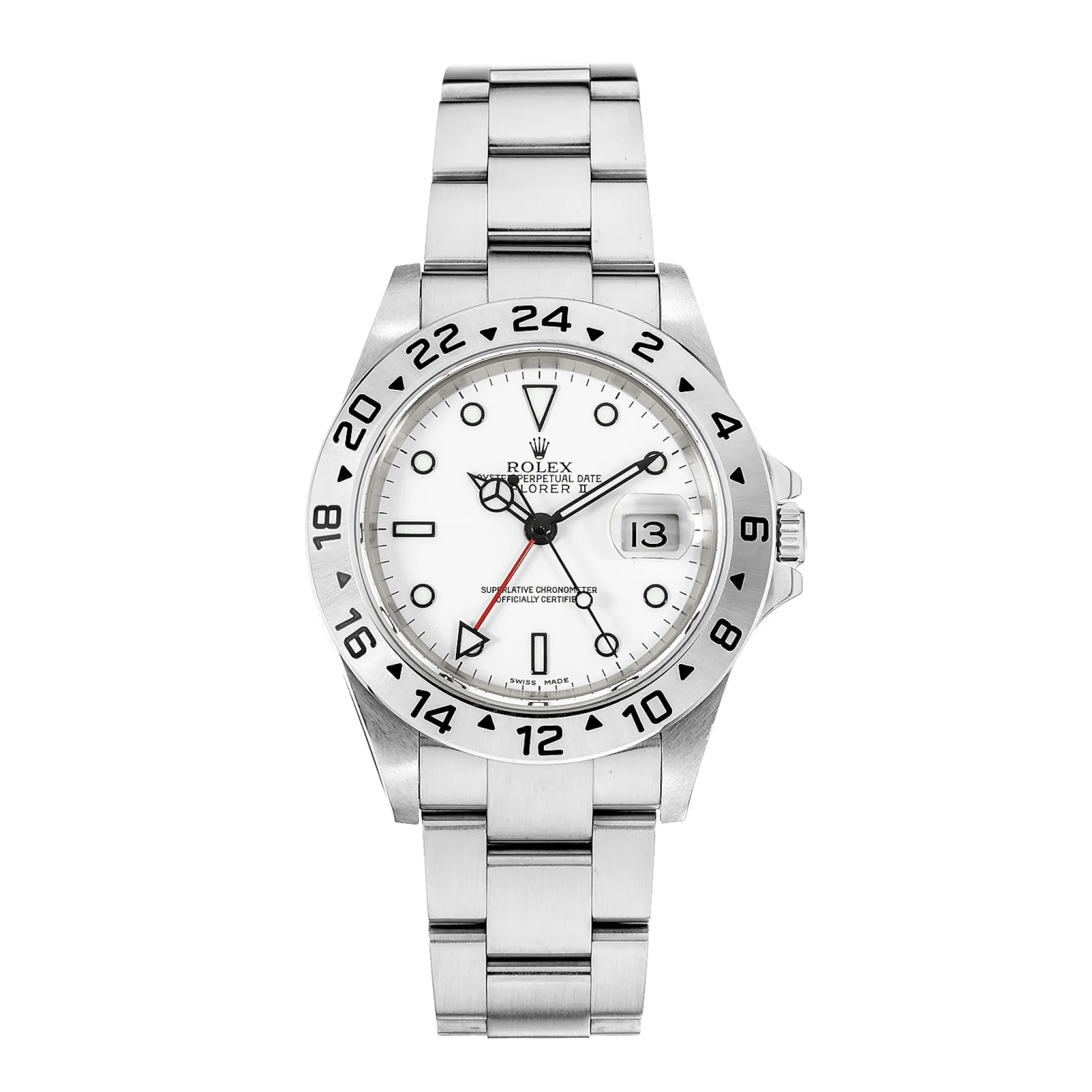 Rolex Explorer II 16570 Uhrwerk: Automatik Gehäusegröße: 40 mm Gehäusematerial: Stahl Armbandmaterial: Stahl (Oyster) Zifferblatt: Weiß Wasserdichtigkeit: 100 Meter