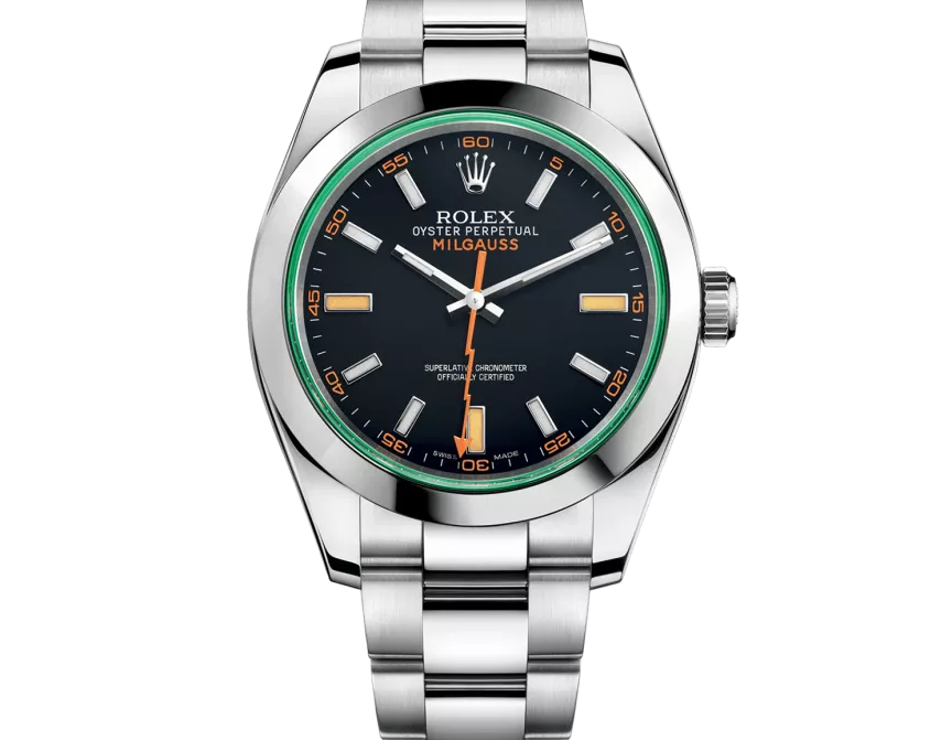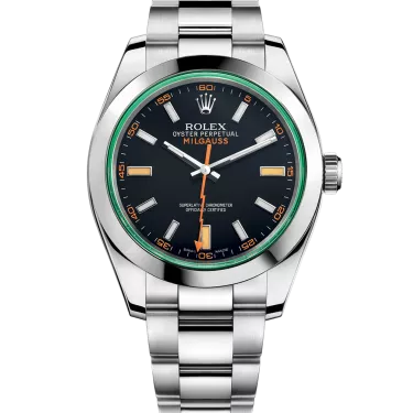 Rolex Milgauss 116400 GV Uhrwerk: Automatik Gehäusegröße: 40 mm Gehäusematerial: Stahl Armbandmaterial: Stahl (Oyster) Zifferblatt: Schwarz mit Strichindizes Wasserdichtigkeit: 100 Meter