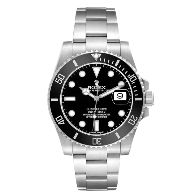 Rolex Submariner 116610LN 40 mm, Edelstahlgehäuse, Lünette und Oyster-Armband, Faltschließe, schwarzes Zifferblatt, Automatikwerk mit Originalverpackung, Originalpapieren und in einwandfreiem Zustand. Diese Uhr wurde geprüft, zertifiziert und einer Wasserdichtigkeitsprüfung unterzogen und hat eine Garantie von 2 Jahren ab Kaufdatum.