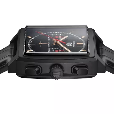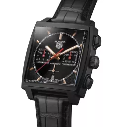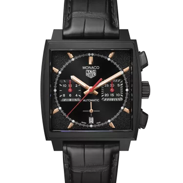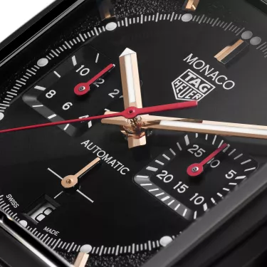 Getreu ihrer legendären Vorgängerin richtet sich die TAG Heuer Monaco Special Edition an Kenner. Ihr kühnes 39-mm-Gehäuse aus schwarzem DLC-Titan verfügt über ein passendes kreisförmiges, schwarzes, gebürstetes Zifferblatt, das mit den 18 Karat roségoldplattierten Zeigern und Indizes 5N kontrastiert. Ein ebenso fachkundiges wie antikonformistisches Modell.