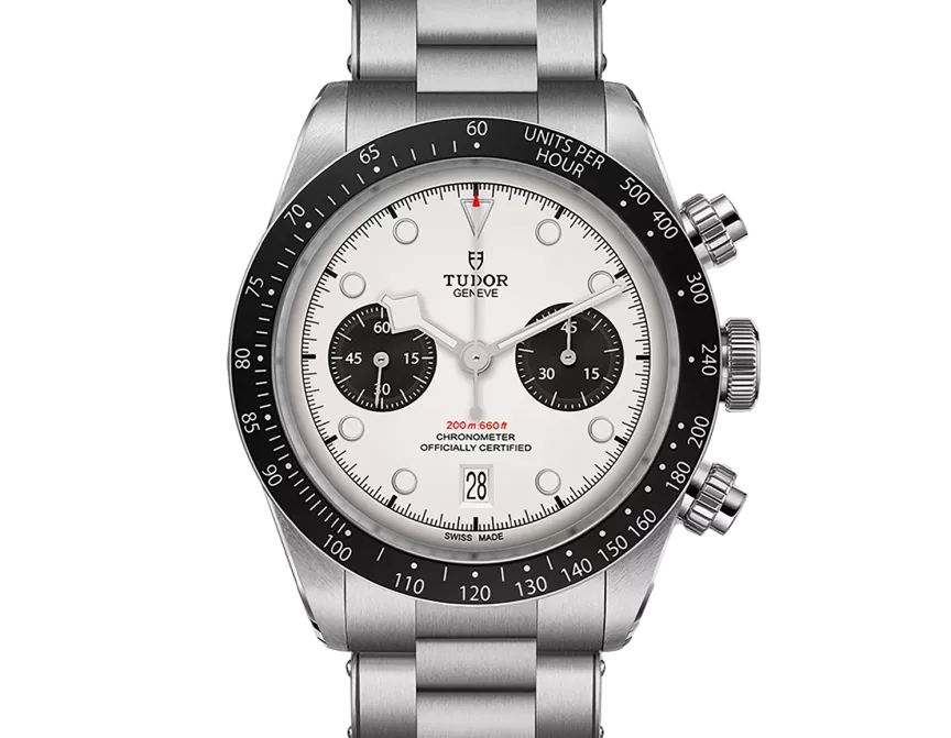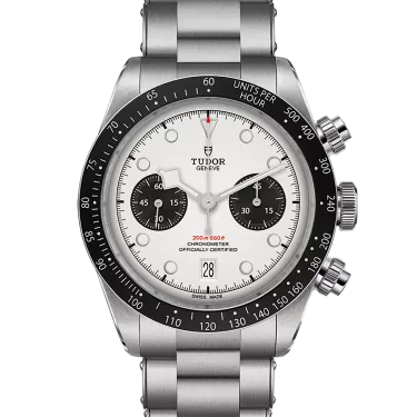 Tudor Black Bay Chrono M79360N-0002 Uhrwerk: Automatik Gehäusegröße: 41 mm Gehäusematerial: Stahl Armbandmaterial: Stahl Zifferblatt: Weiß Wasserdichtigkeit: 200 Meter