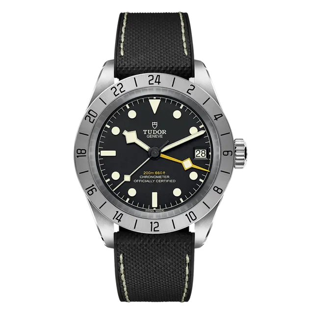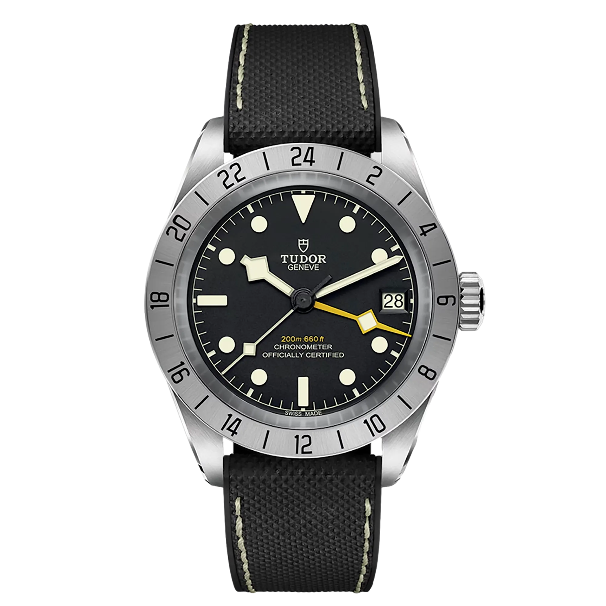 Tudor Black Bay Pro M79470-0003 Uhrwerk: Automatik Gehäusegröße: 39 mm Gehäusematerial: Stahl Armbandmaterial: Leder – Schwarz & Kautschuk Zifferblatt: Schwarz Wasserdichtigkeit: 200 Meter