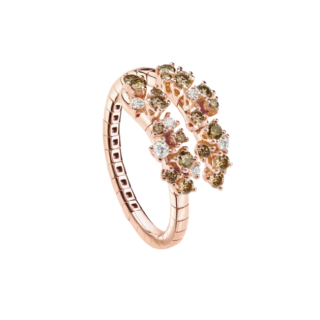 The Mimosa collection jewelry features precious gemstones arranged to evoke the structure of the mimosa flower in a truly unique design.