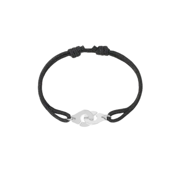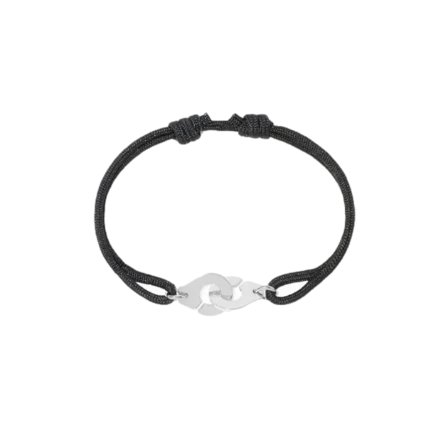 Medium-sized dinh van handcuff bracelet in 18-carat white gold. The iconic dinh van motif adorns a cord bracelet that can be adjusted to suit any style.