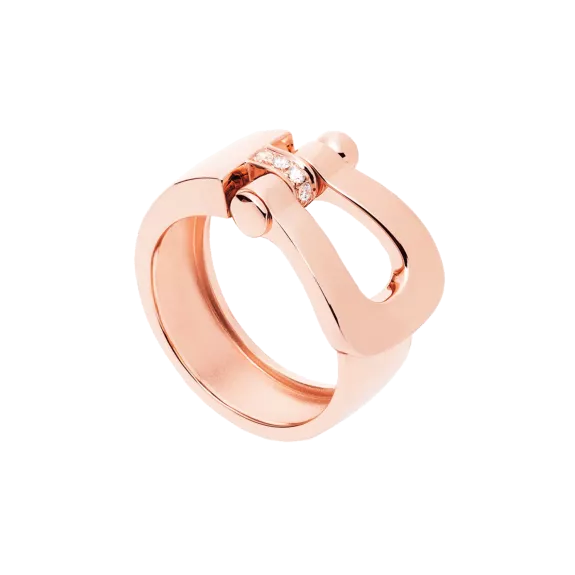 Large model Force 10 ring in gold and white diamonds. Width of the ring: 8mm. 4 brilliant cut white diamonds: 0,05 carat / GVS