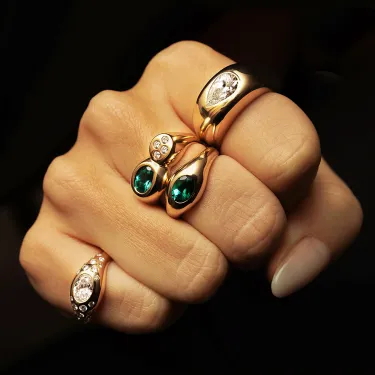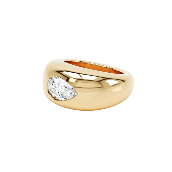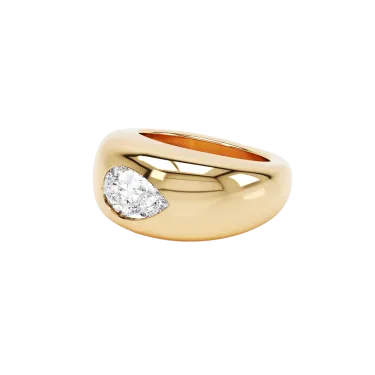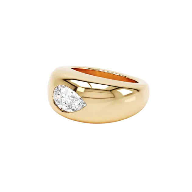 The CURVE Diamond ring is set with an exquisite 1.54ct pear diamond of excellent cut and DEF color. 15 grams of 18 kt recycled gold make this ring is a true statement piece that boldly wraps around your finger.