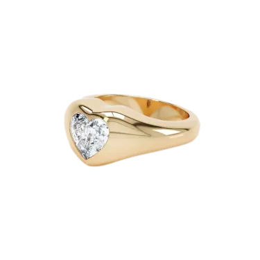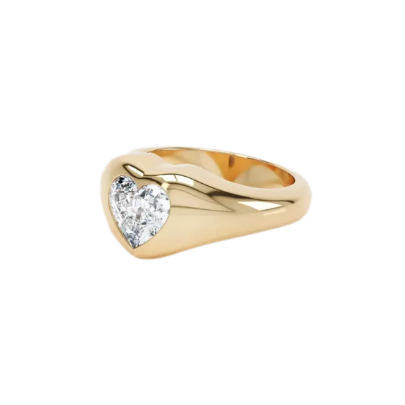The Curve Heart Diamond Signet Ring unites contemporary bold minimalism with polished, sensual curves. Handcrafted in 18kt recycled gold, this ring boasts a stunning sustainable 0.80 ct heart shaped diamond and celebrates love in all its forms.