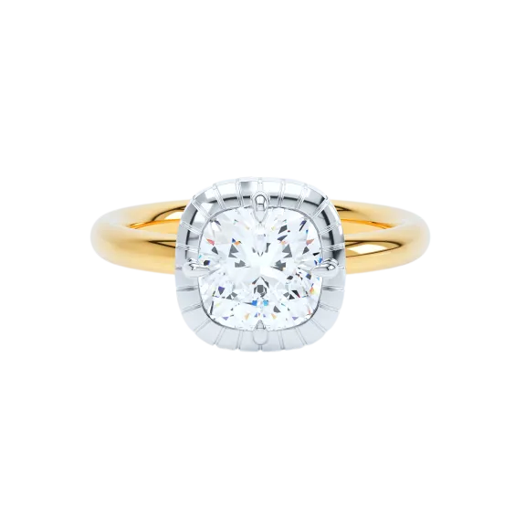 The LOEV Engraved Button Back Cushion Diamond Ring features a striking 2.0ct cushion-cut diamond, set to highlight its depth and soft brilliance. Crafted in 18kt gold with a total weight of 4g, the ring balances presence with understated elegance. Thoughtful engraved details and a distinctive button-back setting add a subtle signature touch, making it a timeless piece with modern edge.