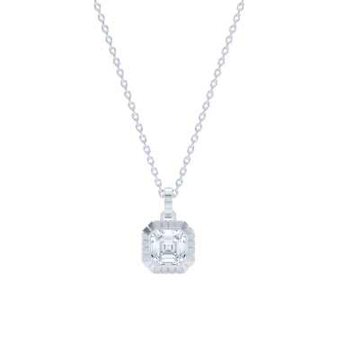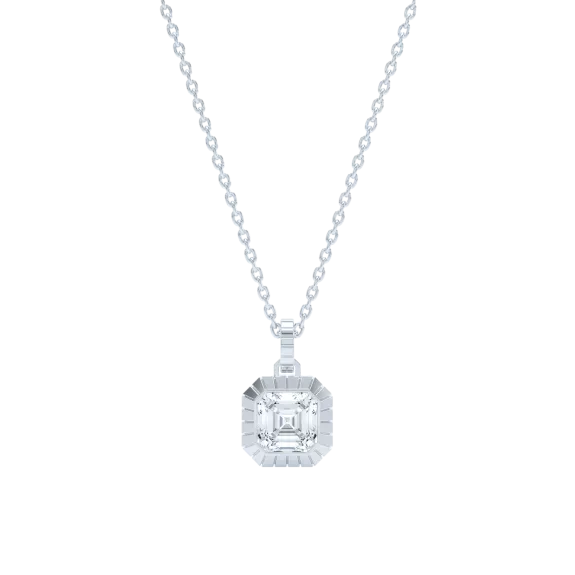 Illuminate your neckline with LOEV's new Eternity Engraved Asscher Pendant. The pendant showcases a captivating Asscher cut lab grown diamond, renowned for its contemporary step cut faceting and mesmerizing depth. The diamond is encased in our distinctive engraved 18kt recycled gold bezel, representing your inner radiance. The unisex pendant comes complete with a chain offering 3 different lengths, perfect for layering this summer.